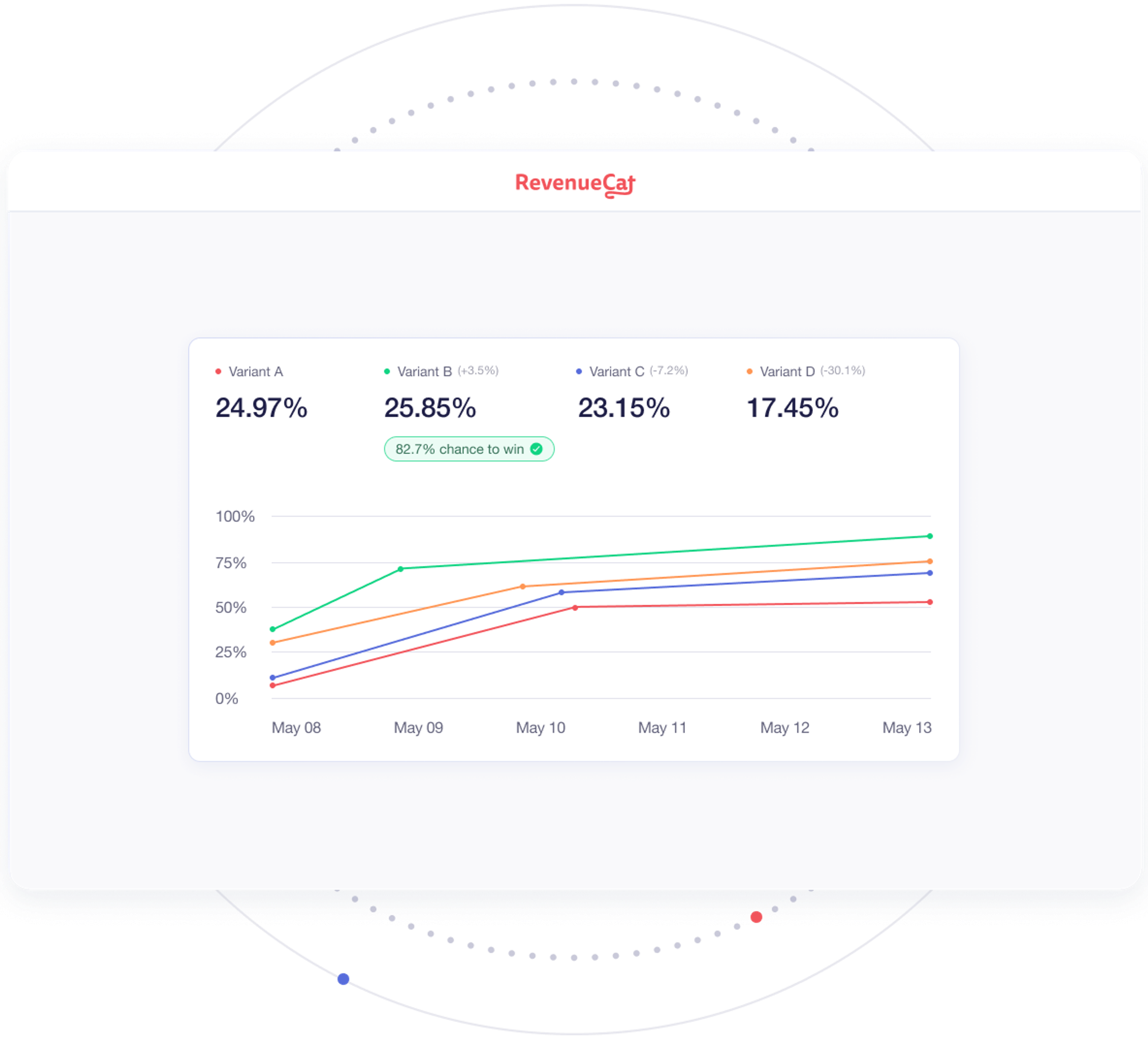 Run miltivariate tests ( A/B/C/D) to help you discover optimal pricing, trial lengths, or paywall designs more quickly.